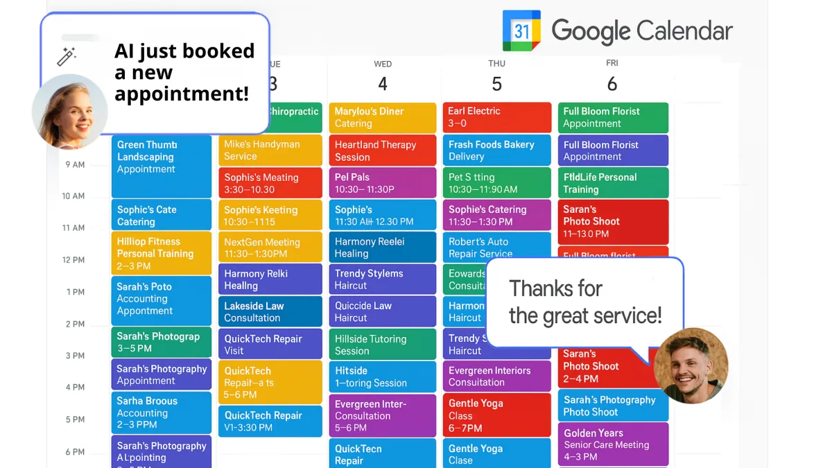 Books, reschedules, and confirms appointments—so you can focus on work.”